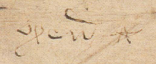 was Robert de Vere, ninth earl of Oxford. De Vere was Chamberlain of England, and the eighteen-year old king’s close political ally and recipient of largesse. In converting the petition to a warrant for the issue of letters patent under the great seal he was acting in a secretarial capacity for the king. He uses the name Oxen, short for Oxenford, and includes a scribbled graphic element. In Life-Records this is described merely as an asterisk, a description repeated by every other writer on the subject. Upon close examination however, and visible in other examples, one can see it is a five-pointed star, in heraldic terminology a “mulet”. The Earl of Ox[en]ford uses it here as an emblem representing his family name of De Vere, who held a hereditary claim to the office of Chamberlain of England.